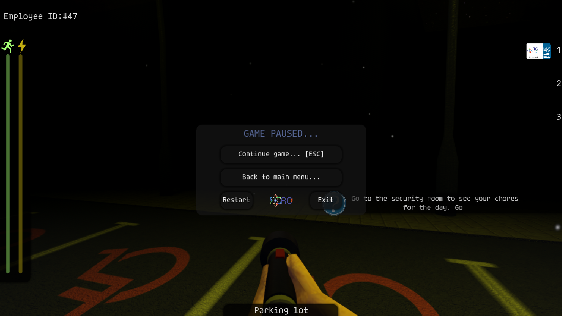 A videogame about a guy(you) working night maintenance shifts at an abandoned laboratory that worked with nuclear materials, bioquemistry and living things. It closed it just before you came in to work, so your role will be to come every night and do the tasks they ask you to do. You have to work there to maintain it every night, as it isn't safe to work at day. There may be a twist..